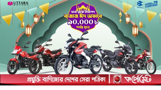 এই ঈদে নিরাপদে পথ চলার প্রতিশ্রুতি নিয়ে আকর্ষণীয় ঈদ অফার চলছে বাজাজ মোটরসাইকেলে! মডেলভেদে সর্বোচ্চ ১০,০০০ টাকা পর্যন্ত মূল্য ছাড়!