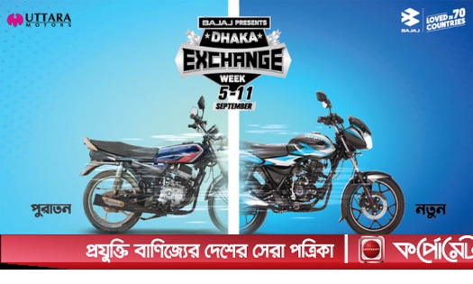 প্রথমবারের মতো বাজাজ নিয়ে আসছে "ঢাকা এক্সচেঞ্জ উইক"। যেকোনো ব্র্যান্ডের মোটরসাইকেল বদলে সাশ্রয়ী মূল্যে নিন নতুন বাজাজ মোটরসাইকেল! ঢাকা ও আশেপাশের নির্দিষ্ট ১৬টি শোরুমে ৫-১১ সেপ্টেম্বর পর্যন্ত চলবে এই এক্সচেঞ্জ অফার।