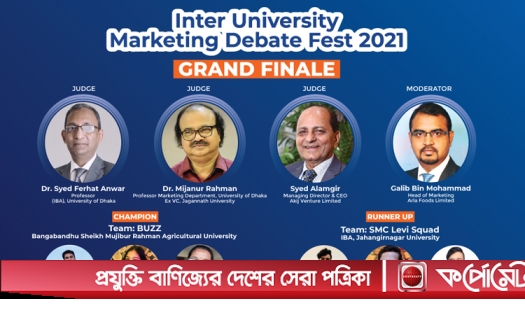 ফাইনাল বিতর্কে বিচারক হিসাবে উপস্থিত ছিলেন এবং প্রফেসর মীজানুর রহমান, মার্কেটিং বিভাগ, ঢাকা বিশ্ববিদ্যালয়, প্রফেসর সৈয়দ ফারহাত আনোয়ার, আইবিএ, ঢাকা বিশ্ববিদ্যালয় এবং সৈয়দ আলমগীর, ব্যবস্থাপনা পরিচালক এবং প্রধান নির্বাহী কর্মকর্তা, আকিজ ভেঞ্চার লিমিটেড। বিতর্কটি মডারেট করেন জনপ্রিয় ব্র্যান্ড প্র্যাক্টিসনার্স গালীব বিন মুহাম্মদ, হেড অফ মার্কেটিং, আরলা ফুডস! অনলাইনে অনুষ্ঠিত এই বিতর্ক উৎসবের টাইটেল স্পন্সর এসএমসি প্লাস ইলেট্রোলাইট ড্রিংক এবং পাওয়ার্ড বাই স্পন্সর ইস্পাহানি ও ওয়ালটন।