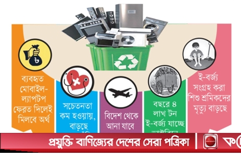 ইলেকট্রিক্যাল ও ইলেকট্রনিক পণ্য থেকে সৃষ্ট বর্জ্য বা ই-বর্জ্য উত্পাদনকারী বা সংযোজনকারী প্রতিষ্ঠানকেই ফেরত নিতে হবে। আর ব্যবহারের পর নষ্ট বা বাতিল মোবাইল ফোন, ল্যাপটপসহ ই-বর্জ্য ফেরত দেওয়ার বিনিময়ে অর্থ পাবেন ব্যবহারকারী। এমন শর্ত রেখেই ‘ঝুঁকিপূর্ণ বর্জ্য (ই-বর্জ্য) ব্যবস্থাপনা বিধিমালা, ২০২১’ প্রণয়ন করেছে পরিবেশ ও বন মন্ত্রণালয়। গত সপ্তাহেই এটা গেজেট হিসেবে প্রকাশ করা হয়েছে। এই বিধিমালার ফলে বিদেশ থেকে এখন আর কেউ পুরনো বা ব্যবহূত মোবাইল বা ল্যাপটপ আনতে পারবেন না। বিশেষজ্ঞরা বলছেন, সচেতনতার অভাবে দিন দিন বাড়ছে স্বাস্থ্যঝুঁকি। ফলে সরকারের এই বিধিমালা দ্রুত বাস্তবায়ন করতে হবে। শুধু আইনের মধ্যে সীমাবদ্ধ রাখলে হবে না।