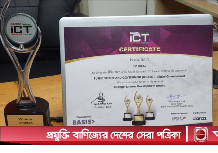 ইউনিয়ন পরিষদ হতে প্রদত্ত নাগরিক সেবাসমূহ জনগণের হাতের মুঠোয় পৌঁছে দিতে ইউনিয়ন পরিষদ সেবা (ইউপিসেবা) সফটওয়্যার তৈরির স্বীকৃতিস্বরূপ ডিজিটাল গভর্নমেন্ট বিভাগে ২য় স্থান অধিকারী হিসাবে জাতীয় তথ্যপ্রযুক্তি পুরস্কার -২০২০ অর্জন করলো অরেঞ্জ বিজনেস ডেভেলপমেন্ট লিমিটেড।
