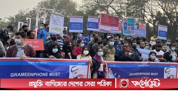 কাজে ফিরিয়ে নিতে গ্রামীণফোন এমপ্লয়িজ ইউনিয়নের মানবন্ধন