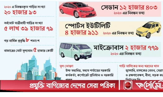 বাংলাদেশ সড়ক পরিবহন কর্তৃপক্ষের (বিআরটিএ) দেওয়া তথ্য অনুযায়ী, ২০২০ সালে মাত্র ২০ হাজার ৯৩টি ব্যক্তিগত গাড়ির নিবন্ধন হয়েছে, যেটি আকারের দিক দিয়ে মোটরযান শিল্পের মাত্র ৫ দশমিক ৩ শতাংশের সমান।