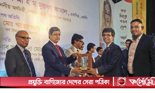 ওয়ালটন প্লাজার পক্ষে ওয়ালটন প্লাজার ব্যবস্থাপনা পরিচালক মোহাম্মদ রায়হান সম্মাননা ও জাতীয় ট্যাক্স কার্ড গ্রহণ করেছেন।