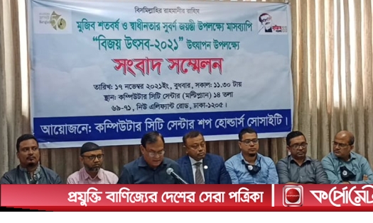 বুধবার (১৭ নভেম্বর) কম্পিউটার সিটি সেন্টারে অনুষ্ঠিত সংবাদ সম্মেলনে এসব বিষয় তুলে ধরেন কম্পিউটার সিটি সেন্টারের সভাপতি ও বিজয় উৎসব-২০২১ এর আহ্বায়ক তৌফিক এহেসান ও সাধারণ সম্পাদক ইঞ্জিনিয়ার সুব্রত সরকার।