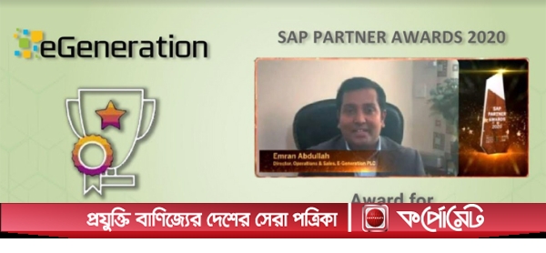 প্রথমবারের মতো বাংলাদেশের কোনো কোম্পানি হিসেবে বিশ্বের শীর্ষস্থানীয় এন্টারপ্রাইজ সফটওয়্যার প্রতিষ্ঠান এসএপি (SAP) থেকে স্বীকৃতি পেয়েছে ইজেনারেশন। গত বৃহস্পতিবার ভার্চুয়ালি অনুষ্ঠিত এসএপি পার্টনার সাকসেস সামিট ২০২১ এ ‘ইমার্জিং পার্টনার অব বাংলাদেশ’ পুরস্কারটি জিতেছে প্রতিষ্ঠানটি।