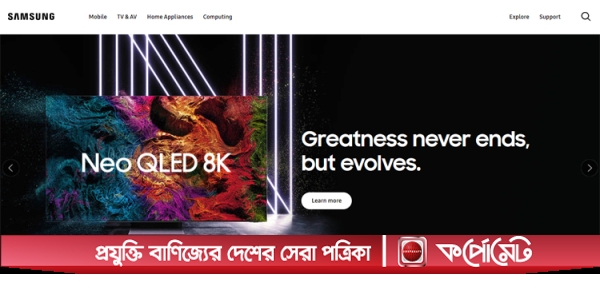 দেশের ক্রেতাদের সুবিধার্থে সম্প্রতি স্যামসাং এর অফিশিয়াল ওয়েবসাইট চালু করেছে। ক্রেতারা এখন থেকে https://www.samsung.com/bd/ - এই সাইটে গিয়ে স্যামসাংয়ের মোবাইল ডিভাইস (স্মার্টফোন এবং ট্যাবলেট), ঘড়ি, টেলিভিশন, সাউন্ড ডিভাইস, হোম অ্যাপ্লায়েন্স (রেফ্রিজারেটর, ওয়াশিং মেশিন, এয়ার কন্ডিশনার, মাইক্রোওয়েভ ওভেন, এয়ার পিউরিফায়ার), কম্পিউটিং ডিভাইস এবং বিশ্বের এক নম্বর ইলেকট্রনিক্স ব্র্যান্ডের তৈরি অন্যান্য অত্যাধুনিক পণ্য দেখতে পারবেন, পাশাপাশি এ সম্পর্কে সকল তথ্য জানতে পারবেন।