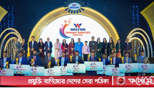 ওয়ালটন প্লাজার ‘চ্যালেঞ্জারস সামিট-২০২৩’ অনুষ্ঠানের অতিথিদের সঙ্গে পুরস্কৃত কর্মকর্তাদের একাংশ