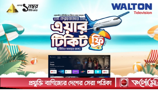 ঈদকে সামনে রেখে ওয়ালটন টিভি কিনে ঢাকা-কক্সবাজার-ঢাকা’র এয়ার টিকিট ফ্রি পাওয়ার সুযোগসহ দেশব্যাপী চলমান ‘ডিজিটাল ক্যাম্পেইন সিজন-২০’ এর আওতায় ক্রেতাদের জন্য রয়েছে ‘ননস্টপ মিলিয়নিয়ার’ হওয়ার সুযোগ। অর্থাৎ ওয়ালটন টিভি কিনে ক্রেতারা পেতে পারেন নগদ ১০ লাখ টাকা।
